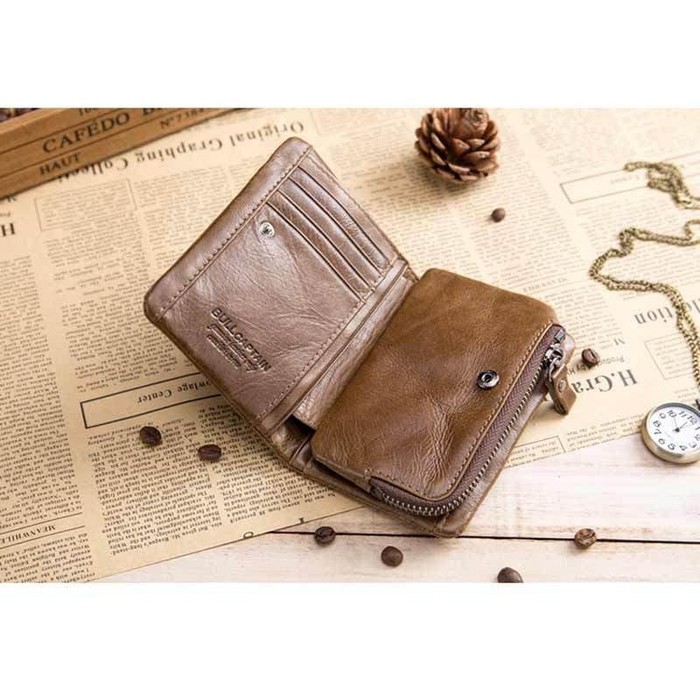 Bullcaptain Pendek Tri Lipat Gesper Ritsleting Dompet Pria Kulit Sapi Dompet Koin Dompet Uang Tas Bisnis Pemegang Kartu Rfid Pemegang Zipper Wallet Men Leather Walletcow Leather Wallet Aliexpress