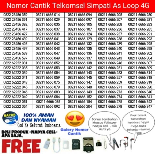 Bayar Di Tempat Cod Kartu Perdana Nomor Cantik Telkomsel Simpati As Loop 4g Shopee Indonesia
